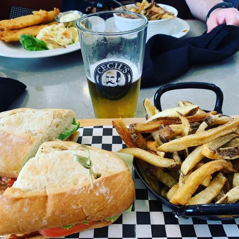 Sitting here at Cecil’s now and wanted to write a review before I forgot. We are served by a lovely young lady Leila. Amazing fish and chips, green apple pecan salad and the best in house IPA