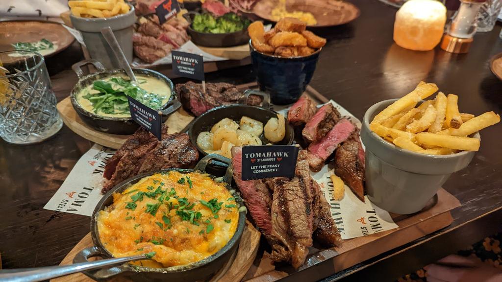 My husband and I came here on the first night of our mini moon and my goodness, it was brilliant. We got the land and sea sharing board, with hash browns, slaw, beef dripping chips and onion rings. Everything was brilliant. The steak was top quality and the sauces were beautiful, too. The staff were so super friendly and attentive, and when they found out it was our mini moon they got us Prosecco and then a lovely dessert board. I couldn’t fault them. It was the perfect start to our trip. Would highly recommend. Make sure you book!