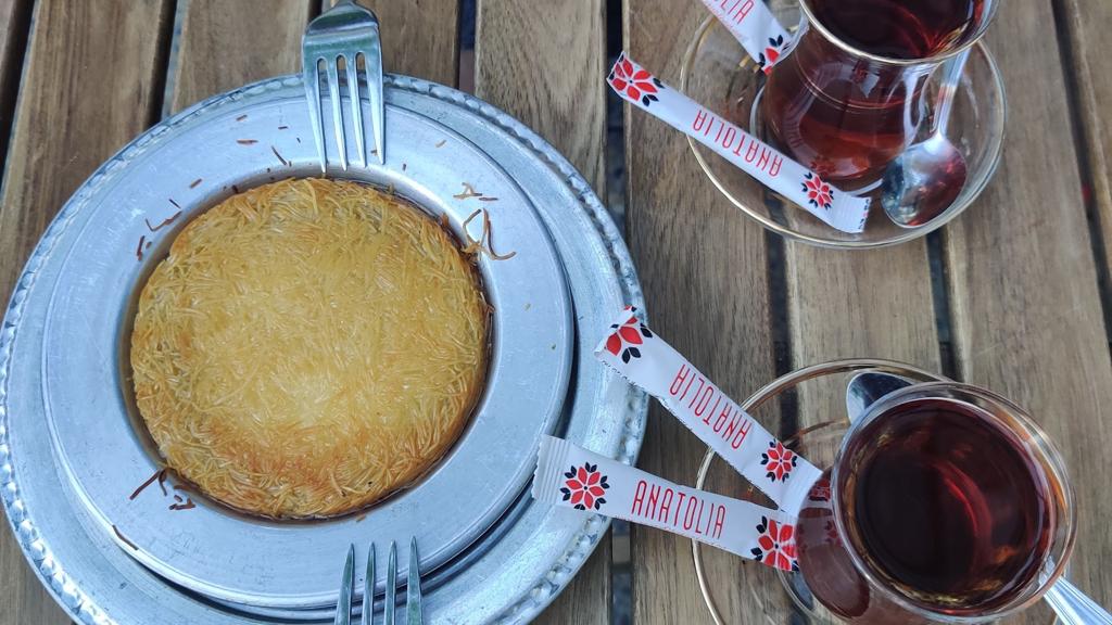 Ate here for the first time tonight. The server up front as we entered was very helpful. He explained the dishes and recommended the Friends Platter ($49.99). We ordered that and a Kunefe for dessert. The platter arrived quickly. We paid for a bottle of water as they don’t serve water. The food (various meats, rice flavoured with meat juices) was absolutely delicious! The dessert Kunefe was very tasty. We thoroughly enjoyed our meal. Except the family behind me with children who kept pushing my chair every time they went past me. Was happy to see them go. There was Turkish music playing and various beautiful Turkish lamps hanging up. Nice decor. The marketplace was also interesting. We will be back. Excellent experience and service.