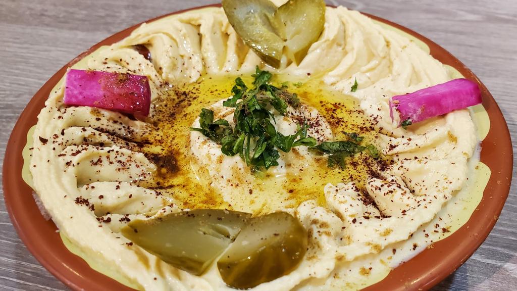 The beef wrap matches really well with the hummus and the white sauce.