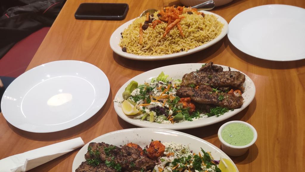 We had dinner here and ordered the family platter. The portions were generous and tasted good. We really enjoyed the kabuli pilao but the kebabs were a bit dry. The atmosphere felt like an au