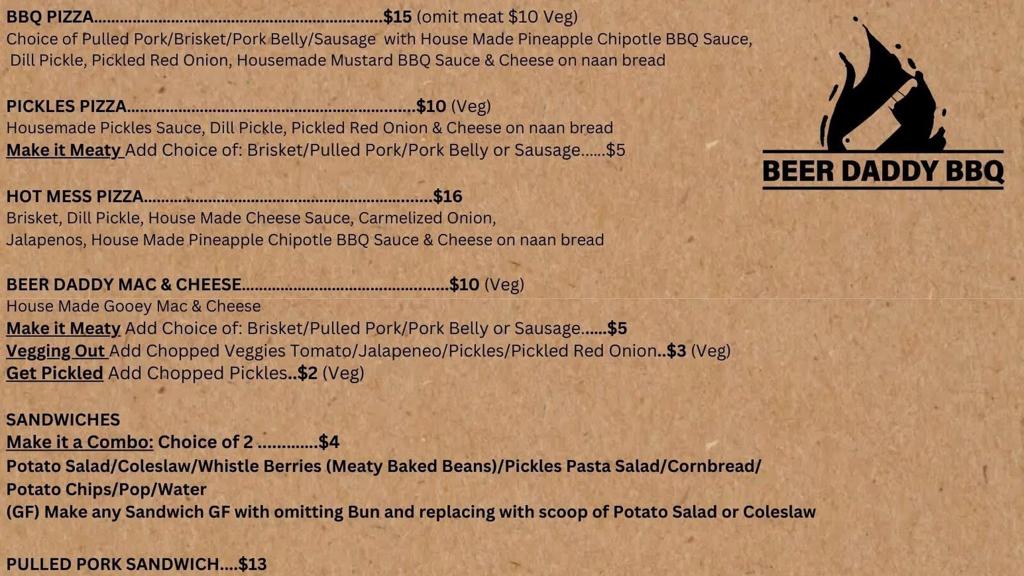 I highly recommend taking the pork belly! The fall-of-the-bone ribs were delicious and the brisket, very tender and fatty. I was very impressed with their mac and cheese, usually they don't taste much, but this one had a nice smokey flavor and very peppery. The staff is very charming and welcoming. Come on a Sunday to try their rotating flavours of homemade Whoopie pies.