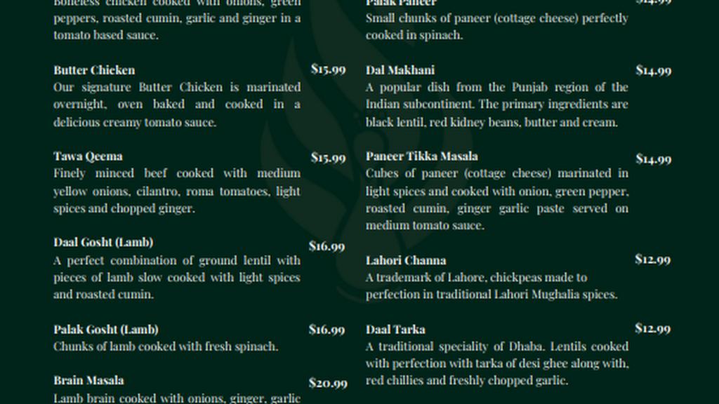 I like spicy and flavour and everything we got packed a punch and it was awesome. We got butter chicken, beef seekh kabab and chicken biryani with naan and rice. Everything was delicious and will definitely go back. Our waitress was friendly and helpful.