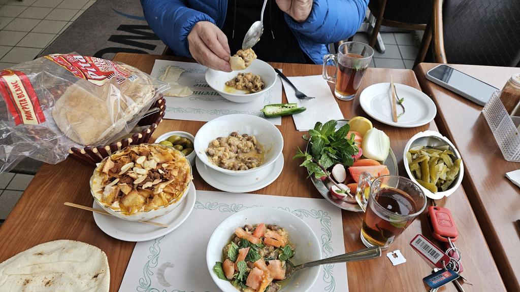 I ordered Fatteh, a dish of foul, and a cheese Manoushe. I was eagerly anticipating the Fatteh, as I had been craving it, but unfortunately, it didn’t meet my expectations. It lacked salt and had a strange taste, possibly due to the chickpea water. The foul also needed more lemon and salt, which I had to add myself. On the bright side, the Manoushe was large and delicious.