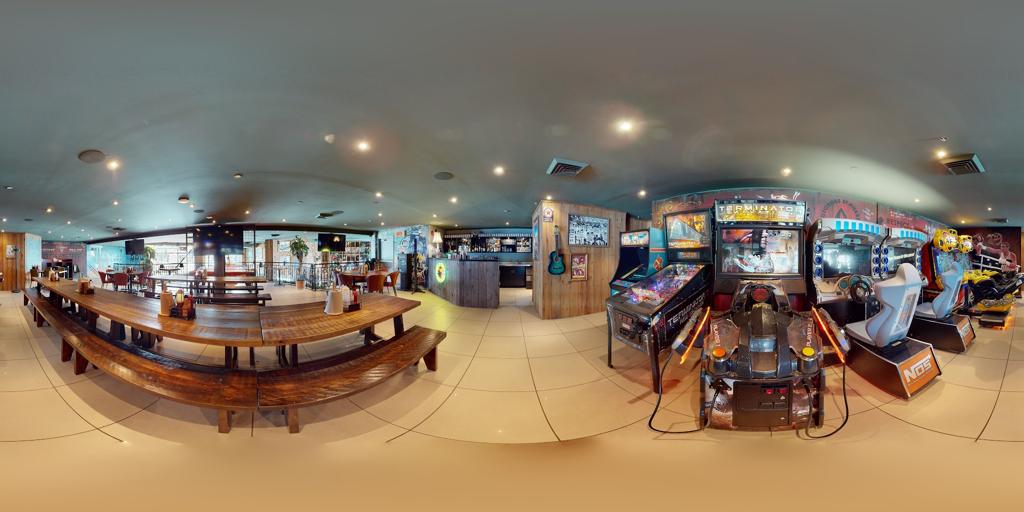 Ambiance - very loud for conversations. Great TV setup. Dark atmosphere.